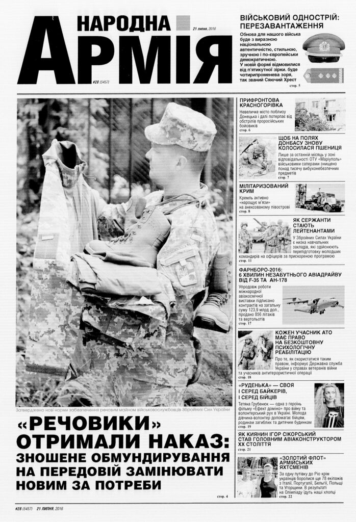Narodna armiia (Народна армія, People’s Army) was released at the beginning of Ukrainian independence and with the newly created Armed Forces of Ukraine as successor to the Soviet military publication of the Ukrainian SSR, Leninskoe znamia (Lenin’s Banner). Published in Kyiv from 1991-2018, this Ukrainian-language publication details the creation, reform, and redevelopment of the Armed Forces of Ukraine with a particular focus on military training, international military cooperation, and social benefits for servicemen and their family members. Correspondents also covered the activities of Ukrainian peacekeepers in UN operations in Bosnia-Herzegovina and the activities of the Ukrainian-Polish battalion in Kosovo.