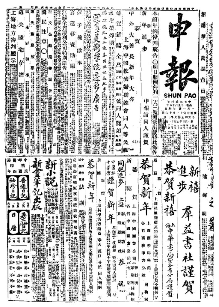 Established in 1872, Shen Bao (申報, historically transliterated as Shun Pao or Shen-pao) was the most influential and longest lasting commercial newspaper before the establishment of the People’s Republic. Published in Shanghai until 1949, Shen Bao was founded by Englishman Ernest Major, but, uniquely, as a newspaper for Chinese readers, written by Chinese reporters. During its existence, Shen Bao gradually shifted from a conservative to a more liberal perspective, and played a pivotal role in the formation of public opinion in the imperial period and into the tumultuous beginnings of modern China. Shen Bao’s innovations in printing technologies, specialized use of the telegraph, and dispatch of special military correspondents gave it an edge.