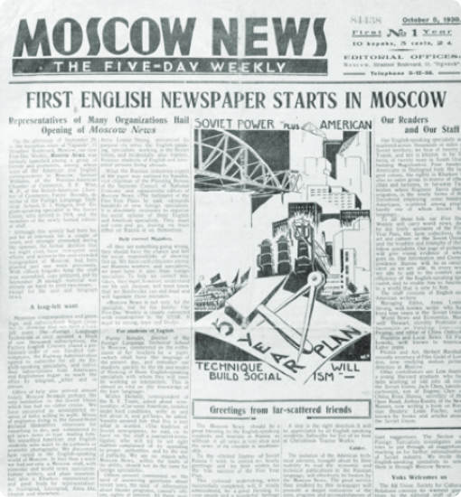 Moscow News (pub. 1930-2014) was the oldest English-language newspaper in Russia and, arguably, the newspaper with the longest democratic history. From a mouthpiece of the Communist party to an influential advocate for social and political change, the pages of Moscow News reflect the shifting ideological, political, social and economic currents that have swept through the Soviet Union and Russia in the last century.